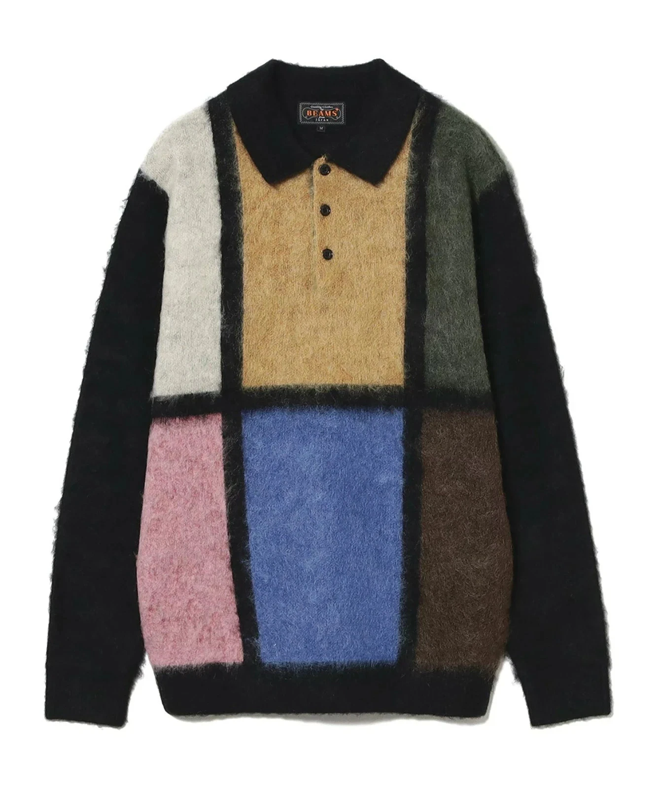 BEAMS PLUS Shaggy Mohair Knit Polo Shirt – Panel Design (Color Block) – Size XL
