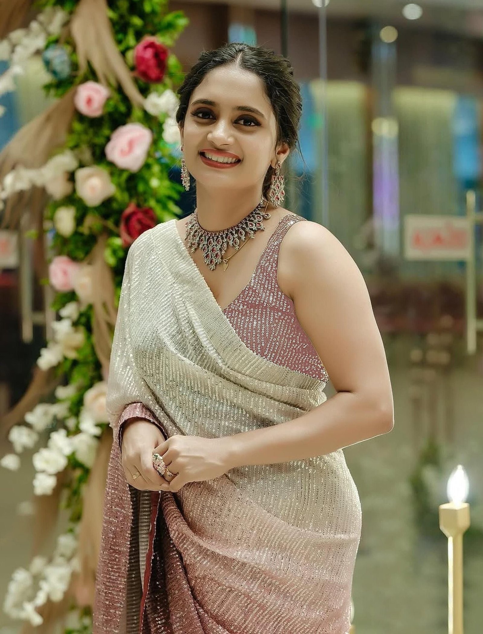 3MM rainbow Sequence Work Done On saree
