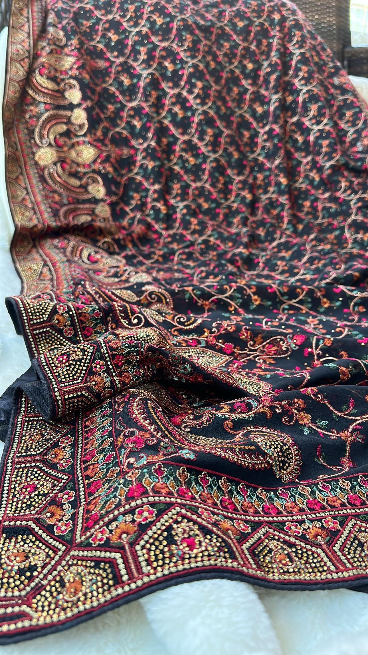 – Heavy embroidery work All over the saree makes it outstanding piece.