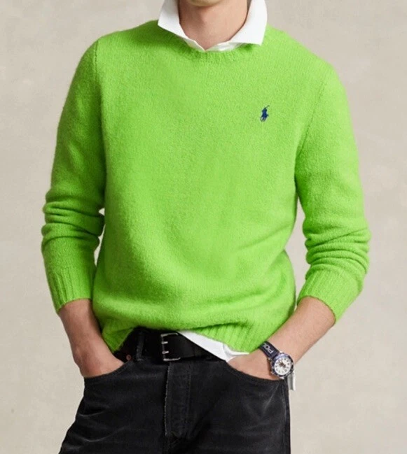 Polo Ralph Lauren Men Fuzzy Wool Blend Sweater Crew Neck Bright Green Sz L NWT