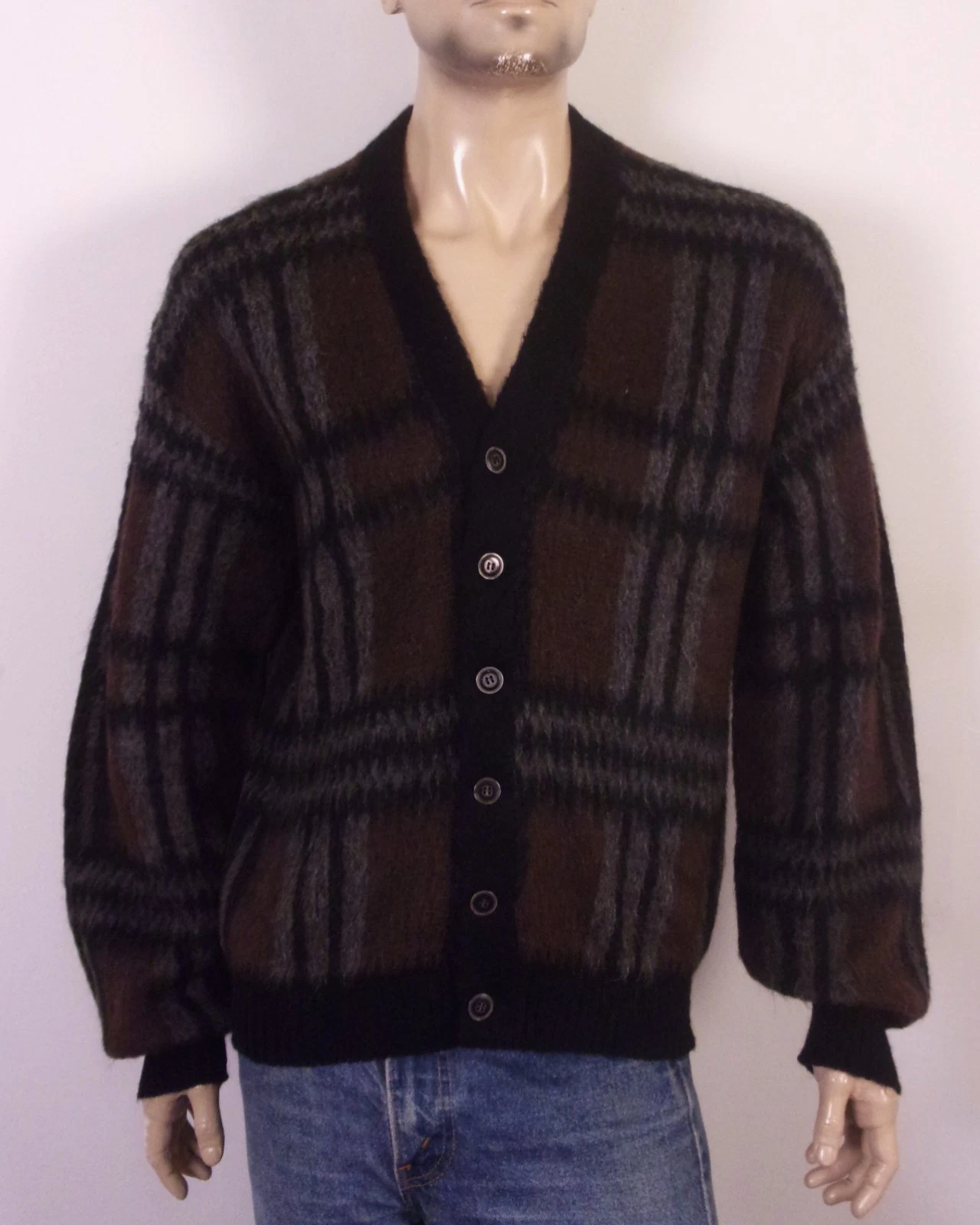 vintage 50s 60s Campus MINTY Wool Mohair Cardigan Sweater Kurt Cobain Nirvana L