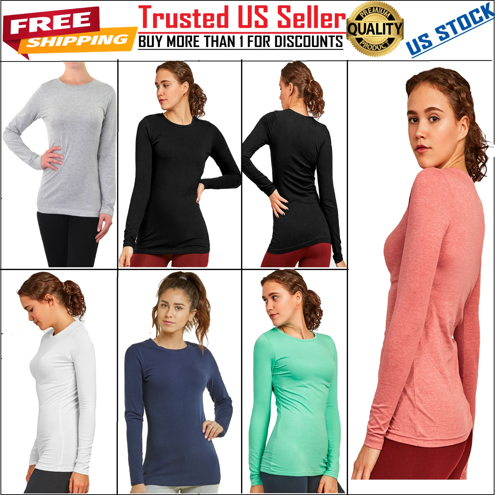 Women’s Cotton Soft T-Shirt Long Sleeve Crew Round Neck Stretch Plain Tunic Top