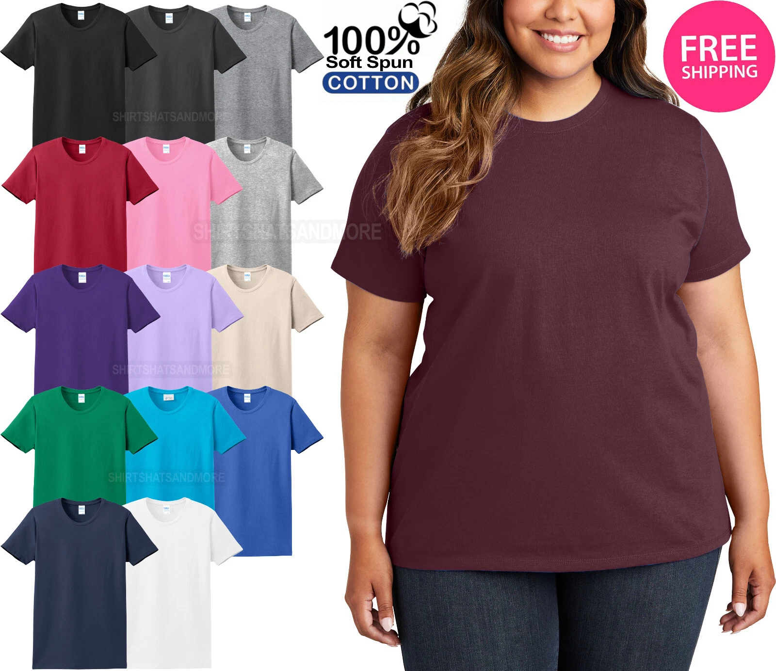 Womens Plus Size 100% Soft Cotton Short Sleeve Tee Ladies T-Shirt Top XL-4XL NEW