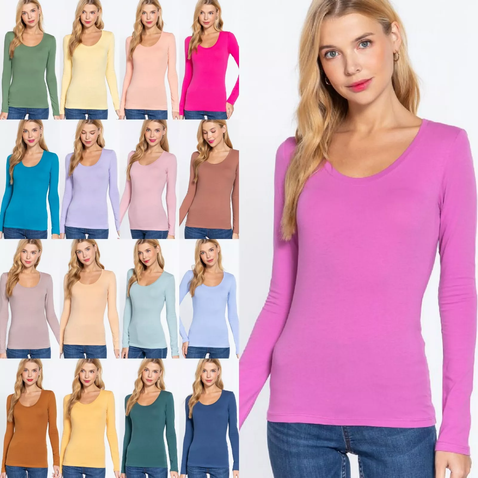 XL 1XL 2XL Women’s Scoop Neck Long Sleeve Soft Cotton T Shirt Fitted Basic Top